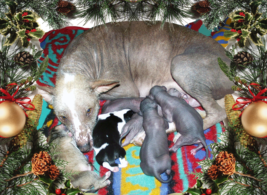 "Xolie" had her puppies the next morning - on Christmas Eve - and God's Christmas present to us of the preciousness of life made us realize from that moment on that we must rescue them as well. No longer will they have to die in shelters because there is no one to save them. Had we been on the hairless breed rescue list at the time "Xolie" first came into the shelter, we would have taken her out on the first day that she became available, just as we take every breed that we rescue.